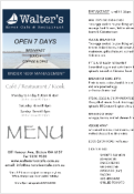 At Walters, we want to make sure you enjoy your visit so we’ve published our menus and wine list on our site along with our prices to help you decide where to start!With breakfasts available until 11:30 and a full lunch menu from 11:30 till our kitchens close, there’s plenty of choice for all the family to enjoy.You’ll find our menus links below, they are available to download as a PDF: (updated 6/11/2018)•Breakfast Menu Download (PDF)•Lunch & Dinner MenuDownload(PDF)•Kids MenuDownload(PDF)•Menu PamphletDownload(PDF)For a selection of wines to go with your meals try our drinks, a range of wines, beers and non alcoholic drinks for every occasion.